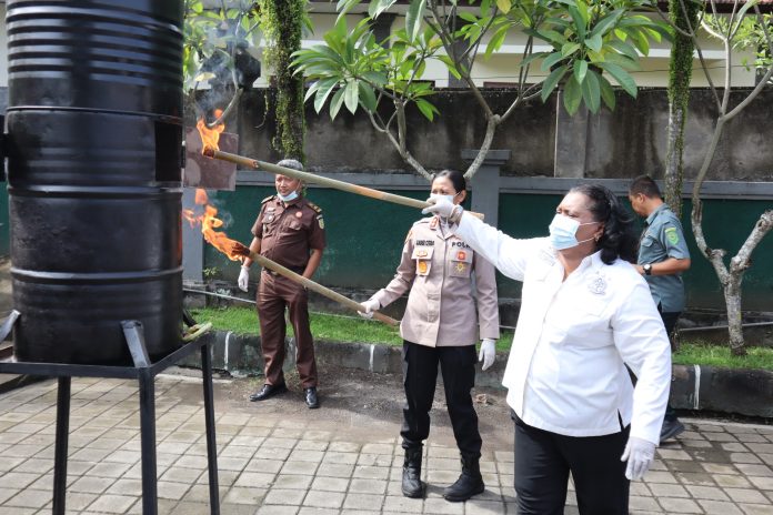 Kegiatan pemusnahan barang bukti di Kejari Jembrana juga dihadiri Kapolres Jembrana AKBP Kadek Citra Dewi Suparwati, perwakilan Pengadilan Negeri Jembrana, Bea Cukai dan BP POM serta perwakilan dari Dinas Kesehatan Pemkab Jembrana. (Komang Tole)