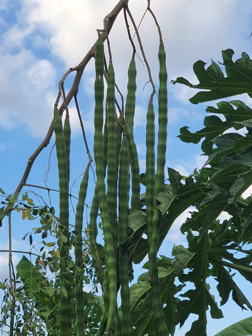 “Kelor ini ada potensi yang buahnya sangat besar sekitar 1 meter lebih. Biasanya kan 30 cm, tapi disini bisa 1 meteran lebih,” ujarnya dengan bangga.