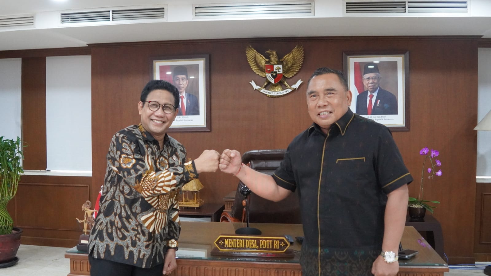 Bupati Jembrana I Nengah Tamba bertemu Menteri Desa Pembangunan Daerah Tertinggal dan Transmigrasi, Dr. (HC) Drs. Abdul. Halim Iskandar, M.Pd di Kantor Kementerian Desa, PDTT Jakarta Pusat, Kamis (18/11). Kordinasi itu dalam upaya mewujudkan desa mandiri bahagia menuju Jembrana sebagai kabupaten satu data.