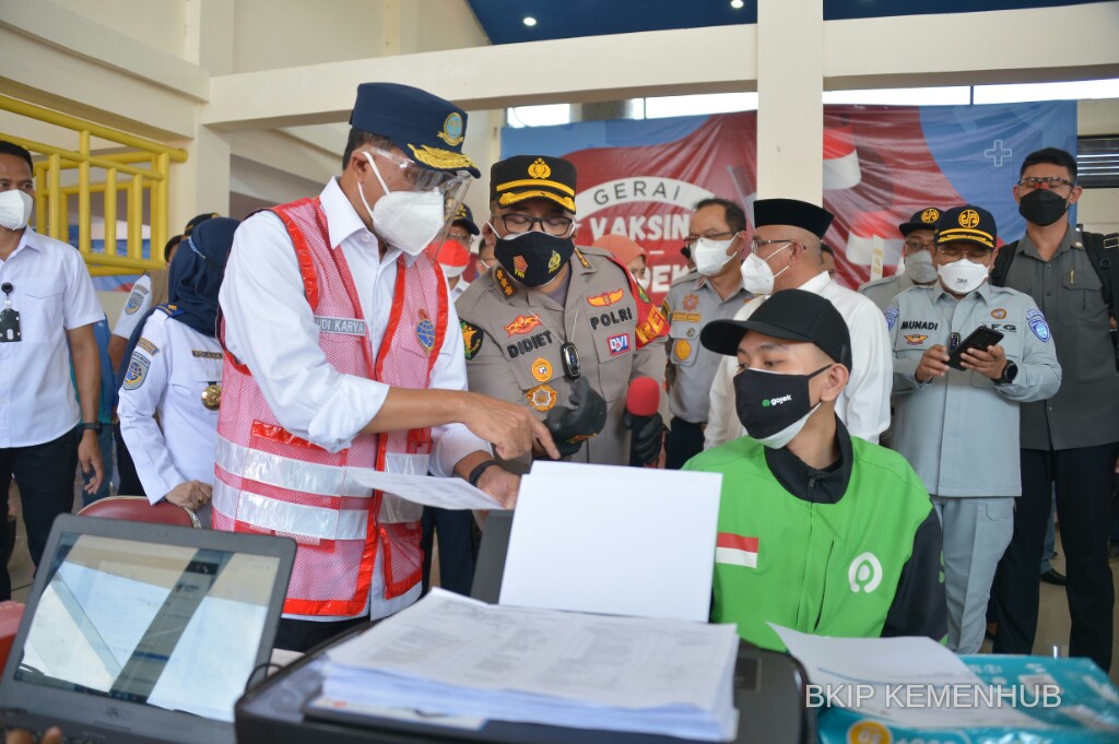 Selain gerakan vaksinasi, Kemenhub bersama stakeholder terkait juga membagikan paket sembako dan buah-buahan lokal (buah nusantara) kepada para tenaga kesehatan, masyarakat terdampak dan juga pelaku transportasi seperti pengemudi angkot dan ojek online.