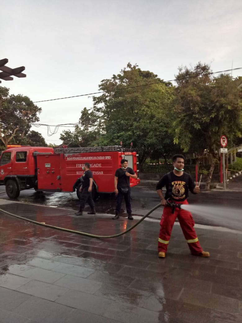 Mitigasi dan peningkatan kewaspadaan guna mengantisipasi penyebaran virus corona, Pemkot Denpasar terus menggencarkan penyemprotan disinfektan rutin. Setelah sebelumnya menyasar pusat pelayanan publik, perkantoran serta obyek wisata dan obyek vital, kini penyemprotan disinfektan dilaksanakan setiap hari dengan menyasar ruas ruas jalan serta ruang publik di Kota Denpasar. Penyemprotan ini dilaksanakan dengan mengerahkan seluruh armada yang dimodifikasi, mulai dari Truck Tangki Air DLHK, Truck Tangki Air PUPR, Truck Tangki Air Dinas Perkim, serta memaksimalkan Armada Damkar dan Moci Air Desa/Lurah.