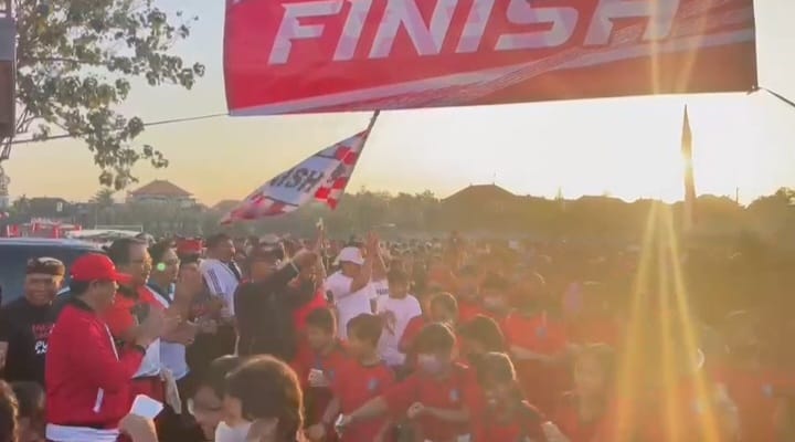 Jalan sehat yang digelar Minggu 13 Agustus 2023/ di lapangan Bina Raga Dalung // diikuti ratusan orang yang terdiri dari anak anak, kaum remaja dan orang tua. Jalan sehat yang digelar oleh Perbekel Dalung I Gede Putra Arif Wiratya berlangsung penuh kegembiraan.