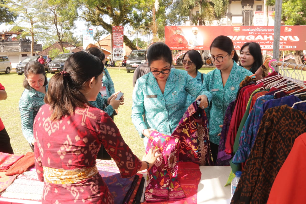 Pemberian bantuan hari itu ditargetkan bagi 100 penerima manfaat dari 8 Kecamatan di Kabupaten Karangasem. Sebanyak 200 paket bantuan dari TP PKK Provinsi dan 10 tas paket belanja dari masing-masing TP PKK Kabupaten/Kota Se-Bali, berupa beras, telur, minyak dan kebutuhan pokok lainnya, diberikan secara simbolis bagi para penerima bantuan yang hadir saat itu. Kabupaten Karangasem juga mengajak serta para pelaku UMKM dan IKM dalam pasar rakyat yang menjual hasil bumi, seperti hasil pertanian, peternakan, perkebunan dan kelautan seperti ikan, telur, sayur, bumbu-bumbu dan buah-buahan. Di samping itu juga dijual produk hasil olahan UMKM UP2K PKK seperti minyak, gula merah dan camilan.