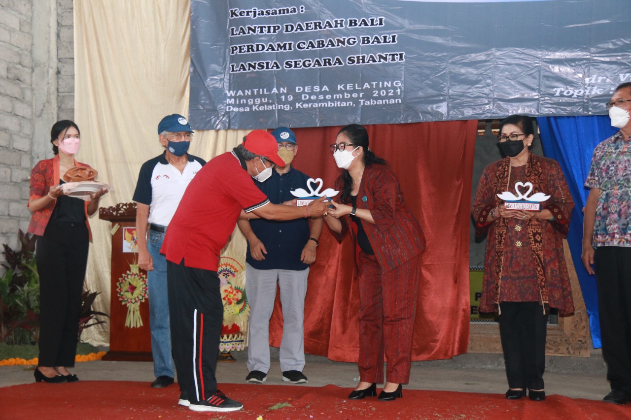 Pada kesempatan ini pemerintah provinsi Bali melalui TP PKK Provinsi juga menyalurkan bantuan langsung pada Lansia Segara Shanti Desa Kelanting berupa paket sembako dan sumbangan dari Gubernur Bali yang diberikan secara simbolis, dilanjutkan dengan pemotongan tumpeng sebagai wujud perayaan.