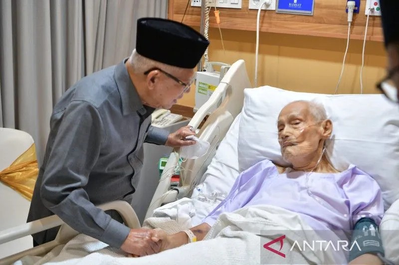 Wakil Presiden Ma’ruf Amin menjenguk Rais Aam Pengurus Besar Nahdlatul Ulama (PBNU) periode 1991-1992 Kiai Haji Ali Yafie yang sedang dirawat intensif di rumah sakit di Tangerang Selatan pada Kamis (16/2/2023) (ANTARA/BPMI Setwapres)
