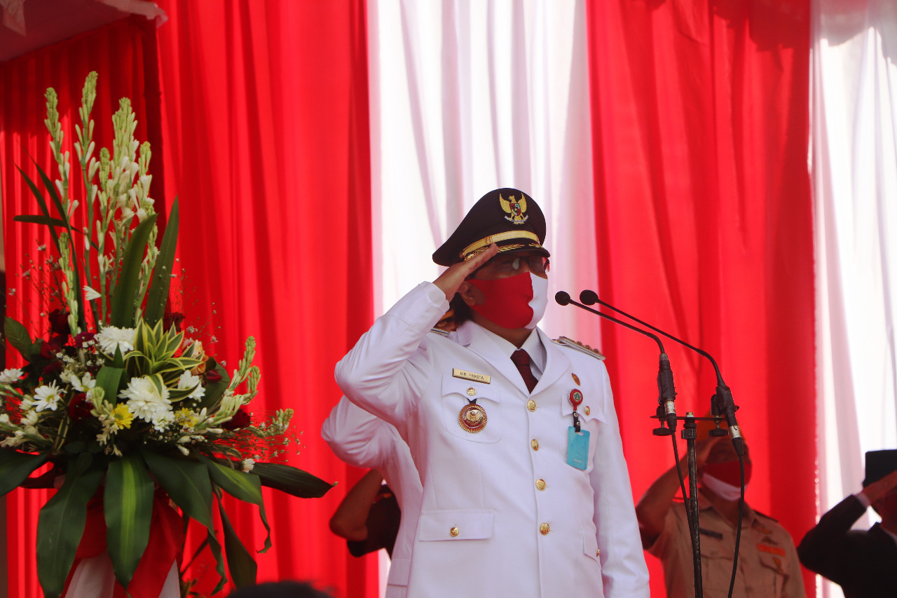Bupati Giri Prasta saat memimpin upacara peringatan HUT kemerdekaan RI di Kabupaten Badung, Senin (17/8).
