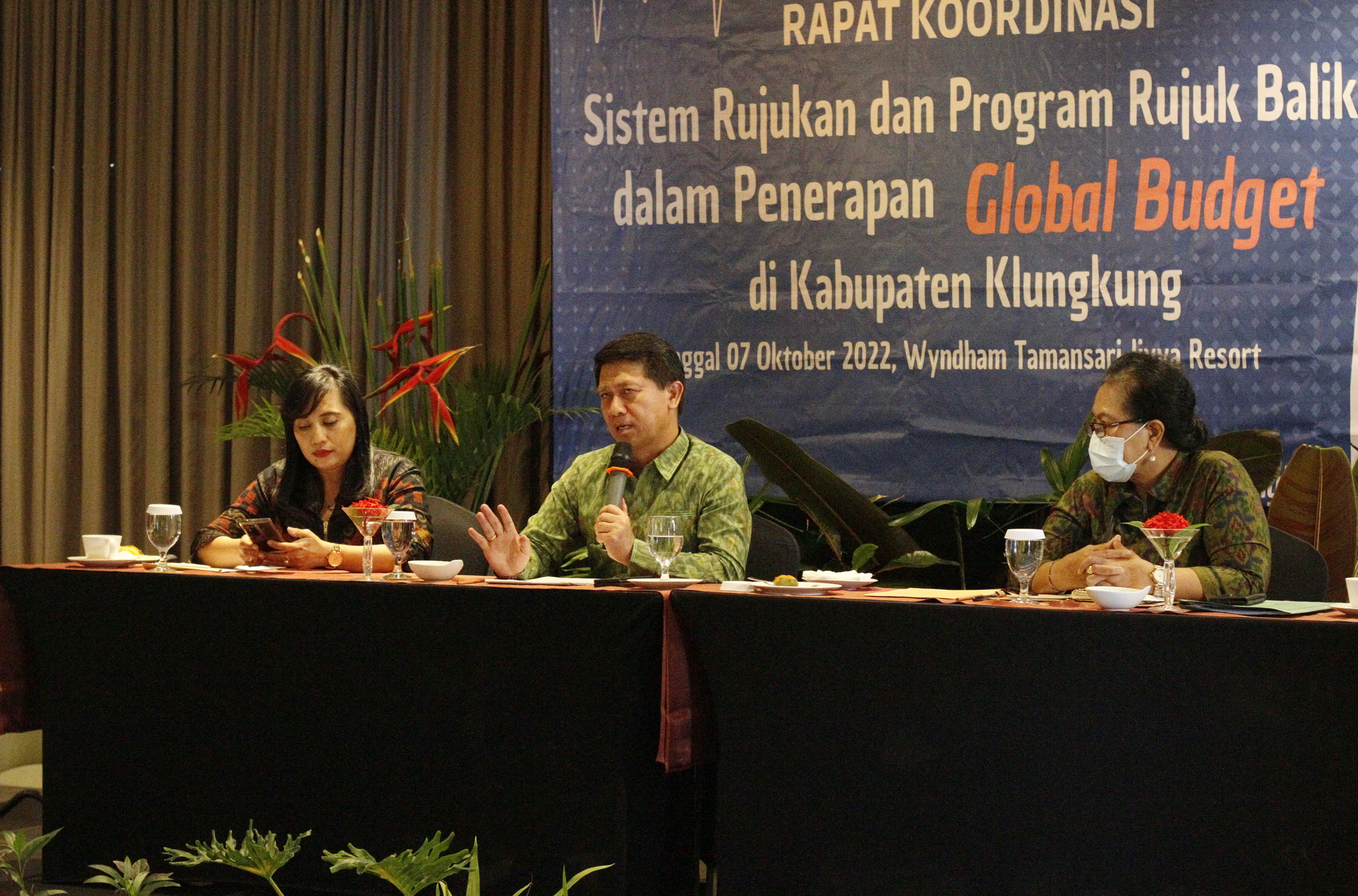 Kepala BPJS Kesehatan Cabang Klungkung, Elly Widiani, menjelasakan Global budget merupakan salah satu sistem pembayaran rumah sakit berdasarkan pada anggaran atau jumlah besaran biaya. Klungkung sebagai kabupaten pertama di Bali yang mengikuti pelaksanaan program tersebut. Yang mendasar dalam pelaksanaan program yaitu peran FKTP sebagai gate keeper adalah salah satu kunci utama keberhasilan implementasi Global Budget. “Kuatakan fungsi masing2 Faskes (FKTP menjalankan fungsi sebagai gatekeeper sesuai kompetensi dan FKRTL sebagai layanan spesialistik/subspesialistik)” ujar Elly Widiani