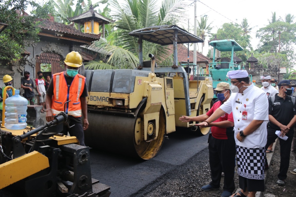 Setelah sebelumnya, Selasa (6/7/2021) meninjau pengaspalan jalan yang menghubungkan Bantas-Gadungan (Seltim), kali ini Bupati yang akrab disapa Bupati Sanjaya itu meninjau langsung rekrontruksi/peningkatan kapasitas jalan melalui penghotmix-kan jalan di komplek Batusangian, Desa Gubug, Kecamatan Tabanan, Jumat, (9/7).