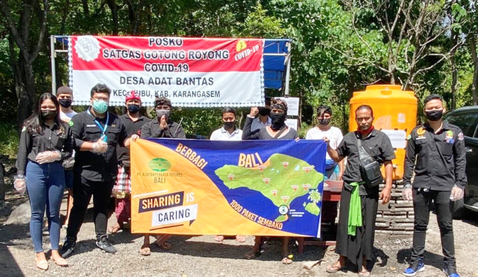 Dalam rangka upaya penanggulangan penyebaran virus COVID-19, PT Kontak Perkasa Futures Cabang Bali menyalurkan bantuan berupa 1.000 paket sembako yang diberikan kepada masyarakat yang terdampak COVID-19 di 9 titik yang berada di 9 kabupaten di Bali antara lain, Badung, Denpasar, Tabanan, Gianyar, Karangasem, Singaraja, Klungkung, Bangli, Negara serta Yayasan Dompet Sosial Madani yang akan disalurkan ke Panti Asuhan, Perawat dan petugas Medis pada Kamis, 07 Mei 2020.