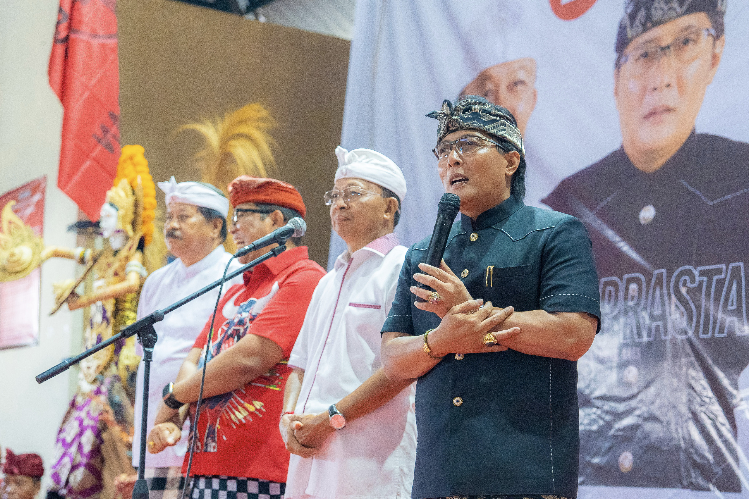 Calon Gubernur (Cagub) Bali Wayan Koster sekaligus Ketua DPD PDI Perjuangan Bali saat Kampanye Terbuka Putaran I untuk Paslon Nomor 2 Koster-Giri pada Sabtu (12/10/2024) di GOR Desa Batungsel, Kecamatan Pupuan, Tabanan.