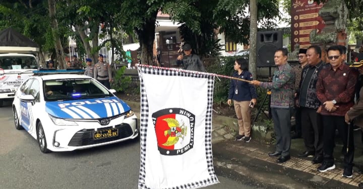 KPU Kabupaten Jembrana, Bali, Selasa (26/11/2024) mendistribusikan logistik untuk Pilkada Serentak 2024. Pendistribusian logistik ke 51 desa dan kelurahan di lima kecamatan mendapat pengawalan pihak Kepolisian dari Polres Jembrana.