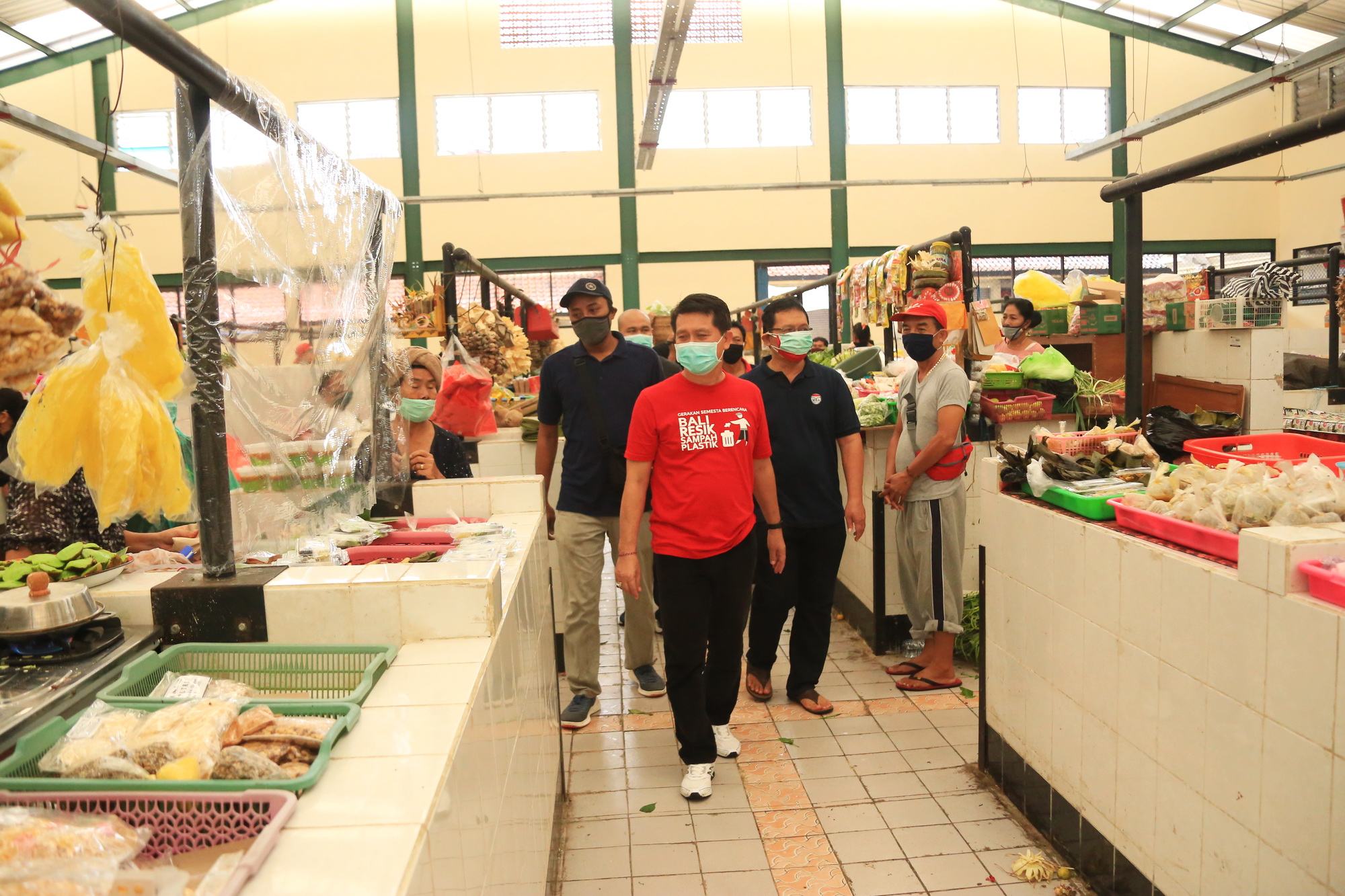 Usai keliling memantau perkembangan jadwal pembuangan sampah, Bupati Klungkung I Nyoman Suwirta didampingi Kepala Dinas Koperasi UMKM, dan Perdagangan Kabupaten Klungkung, I Wayan Ardiasa juga menyempatkan diri untuk memantau kondisi Pasar Seni Semarapura, pada Minggu (21/6/2020). Pagi. Kunjungan tersebut dilakukan untuk mengantisipasi terjadinya lonjatan pedagang lancuban maupun pengujung ke Pasar Seni. “Mulai besok Senin tanggal 22 hingga Rabu 24 Juni Pasar Umum Galiran akan kami tutup, maka dari itu saya mengantisipasi kemungkinan besar Pasar Seni akan ramai, sarana prasarana seperti tempat cuci tangan, tempat sand hanitaizer hingga pintu masuk dan keluar sudah kami persiapkan dengan baik,” ujarnya.