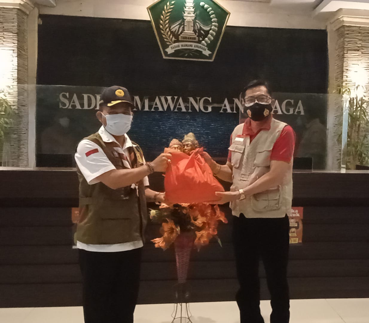 Pada kesempatan ini Ketua Kwarda Bali menyerahkan sebanyak 25 paket sembako yang berisi beras 5 kg, minyak goreng 1L, gula 1kg dan mie 6 bungkus. Sumbangan diterima oleh Sekretaris Daerah Kabupaten Tabanan Gede Susila yang kemudian di serahkan kepada Sekretaris Kwartir Cabang Tabanan yang nantinya akan diteruskan kepada tokoh pramuka di Kabupaten Tabanan. RED-BN