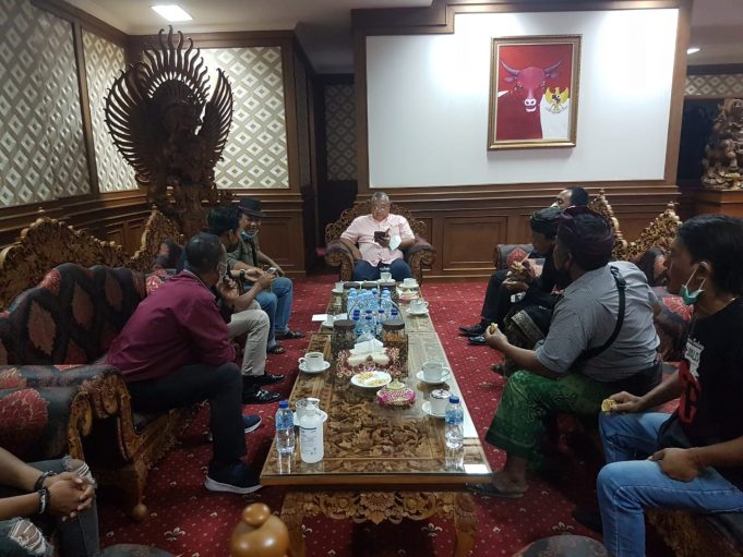 AUDIENSI – Ketua DPRD Badung Putu Parwata menerima audiensi perangkat Desa Carangsari, Kamis (16/9/2021).
