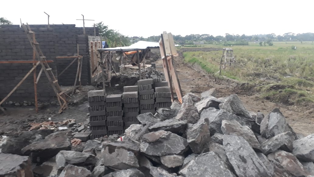 Rencana perumahan berlokasi disebelah timur Bale Subak Tamblang. Dipinggir jalan desa setempat terlihat tumpukan material seperti batu, batako dan tanah urug.