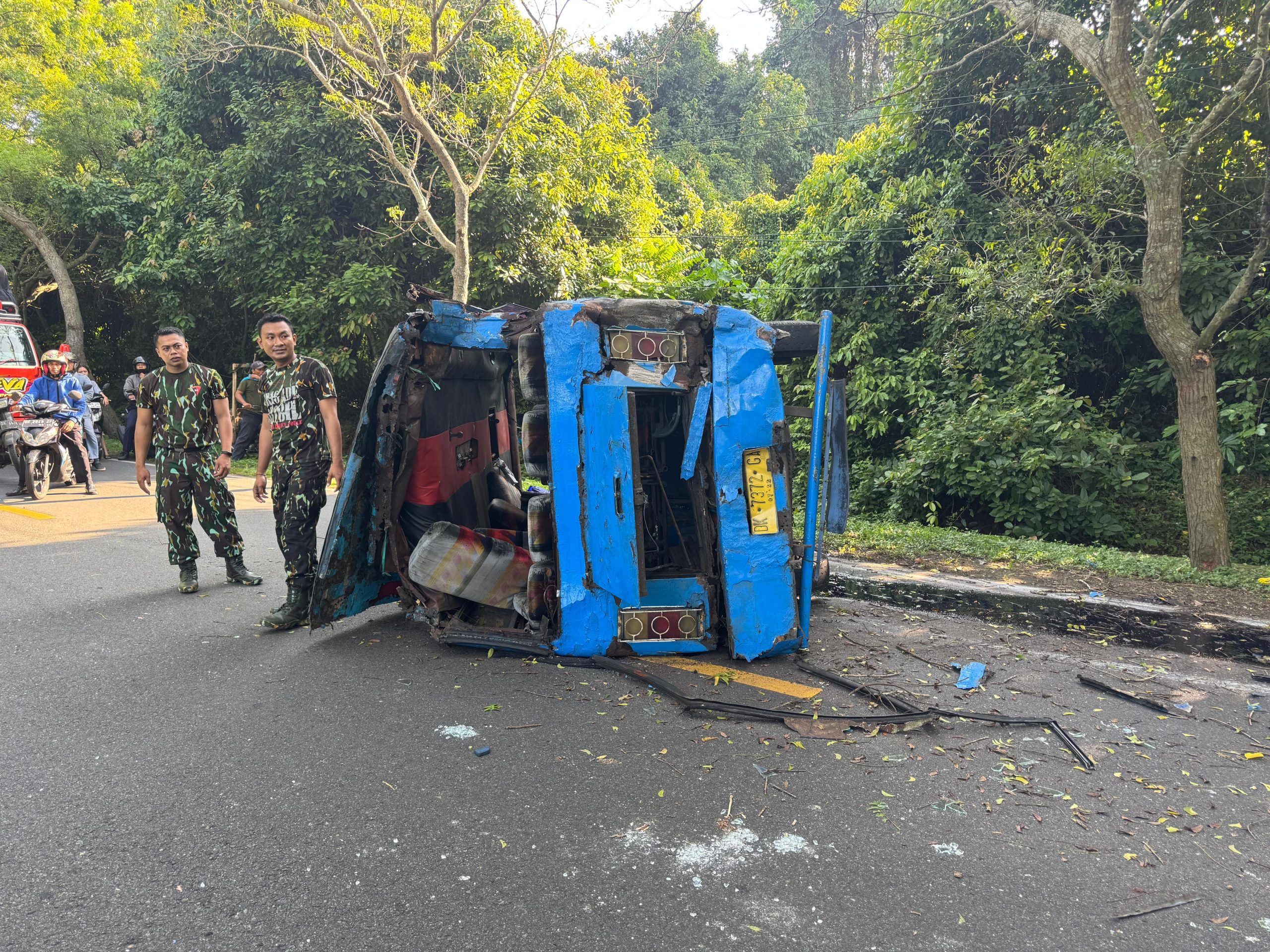 Kecelakaan lalulintas (lakalantas) melibatkan tiga kendaraan terjadi di Jalan Denpasar–Gilimanuk Km 120–121, tepatnya di depan area ACK Kawasan Hutan Cekik, Kelurahan Gilimanuk, Kecamatan Melaya, Kabupaten Jembrana, Kamis (17/4/2025) sekitar pukul 08.35 Wita. Peristiwa tersebut mengakibatkan dua orang penumpang mengalami luka serius.