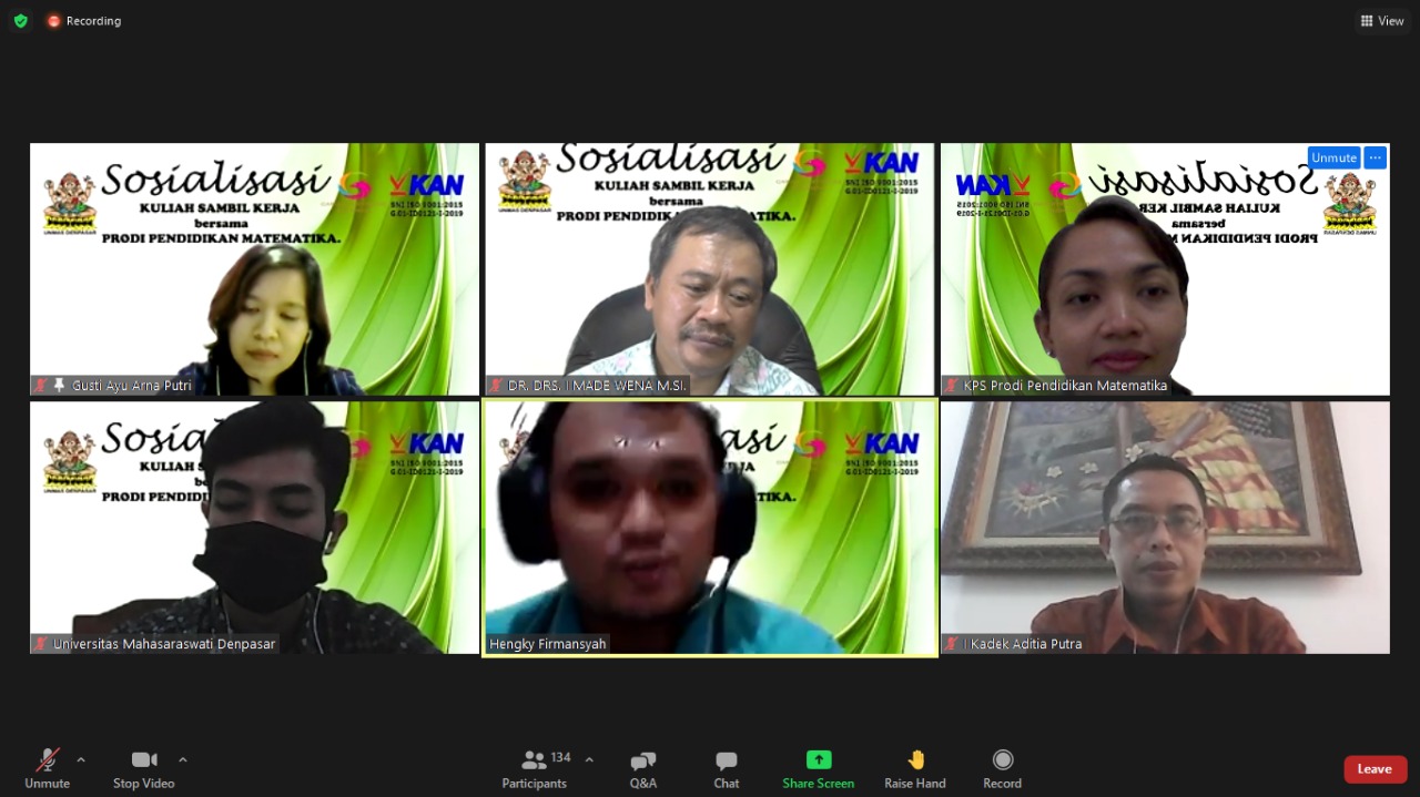 Setiap tahun persaingan antar Universitas, Institut, dan Sekolah Tinggi terasa semakin sengit dan berat. Peningkatan animo calon mahasiswa baru menjadi hal yang tak bisa anggap remeh oleh masing-masing program studi dalam suatu universitas. Oleh karena itu, Prodi Pendidikan Matematika FKIP Unmas Denpasar memperkenalkan eksistensi serta keunggulan yang dimiliki kepada masyarakat luas. Nah, untuk memperkenalkan Prodi Pendidikan Matematika FKIP Unmas Denpasar di kalangan masyarakat luas, maka kami (mahasiswa) dari Himpunan Mahasiwa Program Studi (HMPS) Pendidikan Matematika mengadakan kegiatan sosialisasi pada Sabtu (27/03/2021) yang dilakukan secara virtual melalui aplikasi zoom meeting. Pada kegiatan sosialisasi yang pertama, Prodi Pendidikan Matematika FKIP Unmas Denpasar mengambil tema “Kuliah Sambil Bekerja Bersama Prodi Pendidikan Matematika FKIP Unmas Denpasar” dimana kegiatan sosialisasi diikuti oleh siswa siswi SMA/SMK kelas 12 yang berasal dari Bali dan NTT.