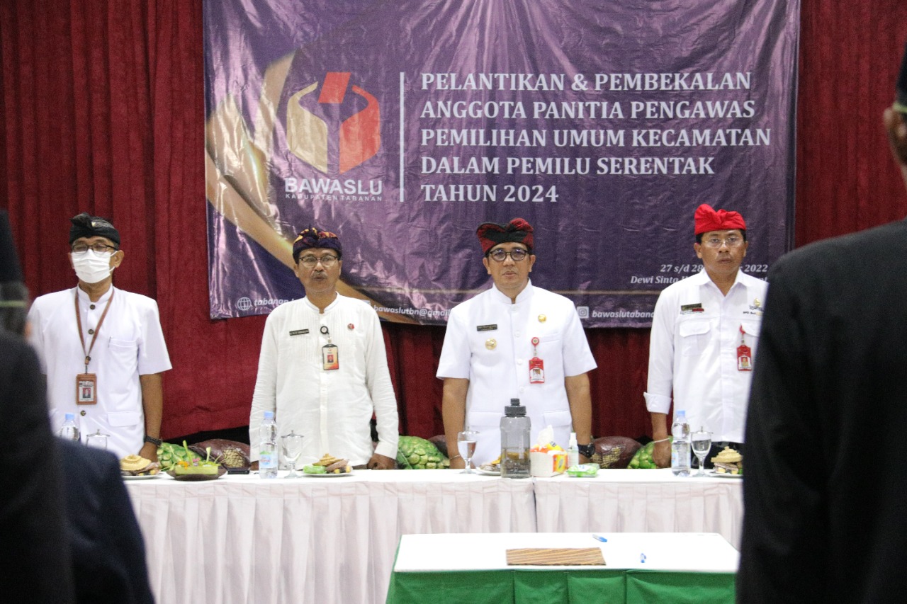 Sebanyak 30 kandidat terlantik mewakili masing-masing 10 kecamatan di Tabanan, berkumpul dalam Pelantikan dan Pengambilan Sumpah/Janji Panitia Pengawas Pemilihan umum Kecamatan Se-Kabupaten Tabanan dalam Pemilihan Umum Serentak Tahun 2024 mendatang. Turut menghadiri, Forkopimda Tabanan, Ketua Bawaslu Provinsi Bali,  Sekda Tabanan dan Asisten 2, Ketua KPU Kabupaten Tabanan, Ketua Bawaslu Tabanan, Kepala OPD terkait di lingkungan Pemkab Tabanan, Camat Se-Kabupaten Tabanan.