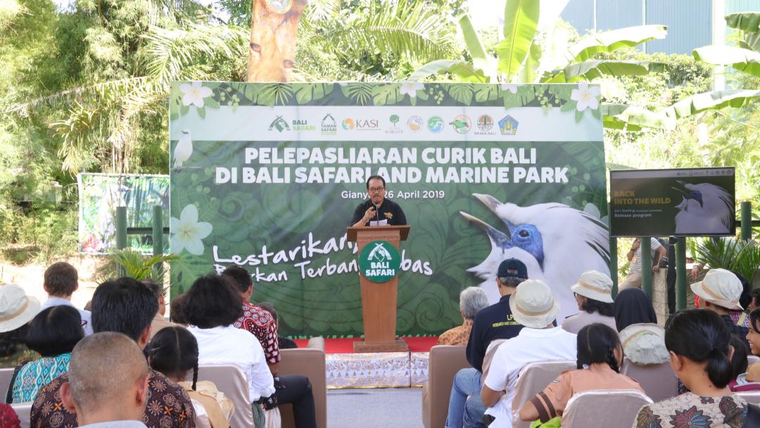 Dalam kesempatan tersebut, ia juga mengapresiasi keberhasilan Lembaga Konservasi Bali Safari & Marine Park dalam melestarikan populasi Burung Curik Bali yang hampir punah. “Di alam liar populasinya hanya 141 ekor yang menyebar di berbagai lokasi di Taman Nasional Bali Barat, jadi jika ada upaya konservasi ini, saya harapkan burung ini bisa menjadi ikon Bali,” ujarnya.