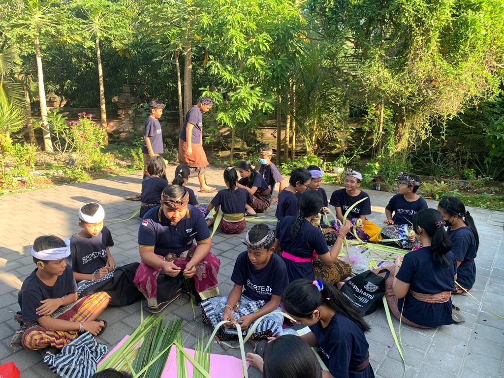 Dikatakannya, kegiatan dalam pelaksanaan pasraman sekolah tersebut dikemas dengan membuat berbagai bahan upakara. Seperti membuat kelatkat, membuat ancak, membuat kulit ketupat hingga belajar membuat canang.