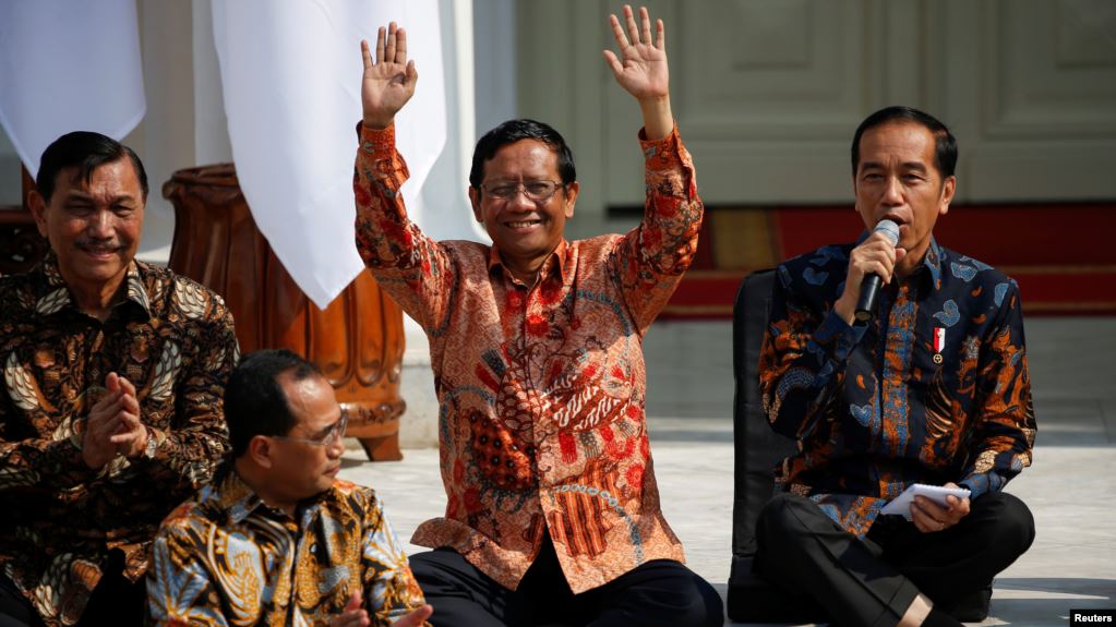 Mahfud MD saat namanya diumumkan sebagai Menteri Koordinator bidang Politik, Hukum, dan HAM oleh Presiden Joko Widodo, di Istana Kepresidenan, 23 Oktober 2019. (Foto: Reuters)