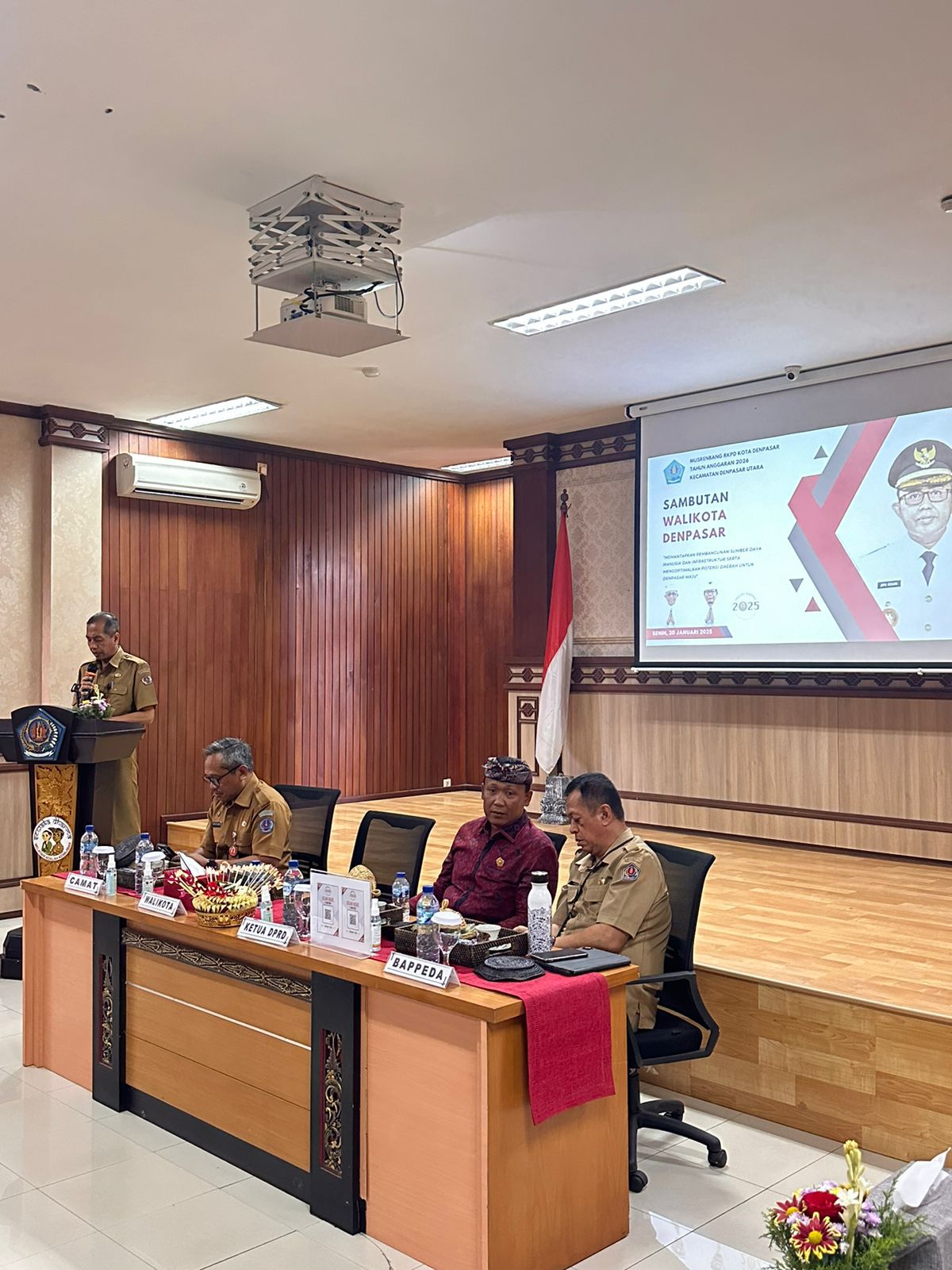 Musyawarah Perencanaan Pembangunan (Musrenbang) Kecamatan Denpasar Utara dalam rangka penyusunan anggaran Rencana Kerja Pemerintah Daerah (RKPD) Tahun Anggaran 2026 dibuka secara langsung oleh Plt. Asisten Administrasi Umum (Asisten 3) Setda Kota Denpasar, I Wayan Sudiana, di Kantor Kecamatan Denpasar Utara, Senin (20/1).