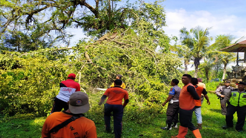 Dari data Badan Penanggulangan Bencana Daerah (BPBD, red)  Kabupaten Gianyar, antara hari Jumat (13/12/2019) sampai dengan Sabtu (14/12/2019) sore tercatat dua kali pohon bertumbangan.