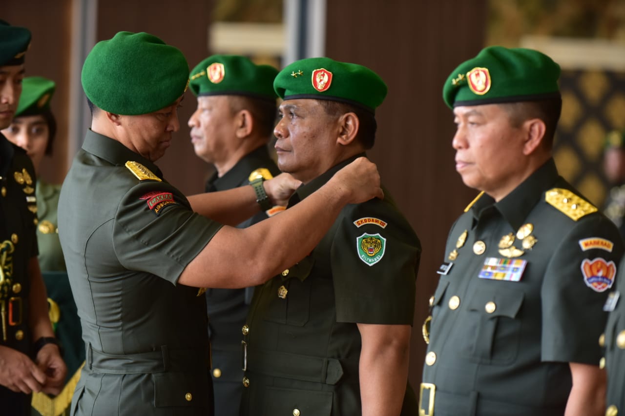 Kepala Staf Angkatan Darat (Kasad) Jenderal TNI Andika Perkasa memimpin upacara Serah Terima Jabatan (Sertijab) Pangdam III/Slw dari Letjen TNI Tri Soewandono kepada Mayjen TNI Nugroho Budi Wiryanto, S.Ip., M.M., dan Kepala Staf Ahli (Kasahli) Kasad dari Mayjen TNI Arif Susilo kepada Brigjen TNI Widodo Iryansyah, S.Sos., M.M. bertempat di Gedung E Lantai Dasar, Mabesad, Jakarta, Jumat (1/11/2019).