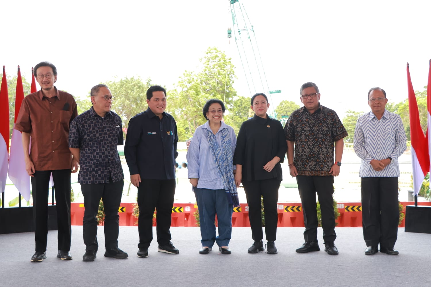 Presiden Kelima Republik Indonesia, Ibu Prof. Dr. (H.C.) Megawati Soekarnoputri meninjau pembangunan Kawasan Ekonomi Khusus (KEK) Sanur, Kota Denpasar pada, Senin (Soma Paing, Langkir) 16 Januari 2023 bersama Ketua DPR RI, Ibu Puan Maharani, Menteri Badan Usaha Milik Negara (BUMN) RI, Erick Thohir, Kepala Badan Riset Inovasi Nasional (BRIN), Laksana Tri Handoko, Sekjen PDI Perjuangan, Hasto Kristiyanto, Gubernur Bali, Wayan Koster, Walikota Denpasar, IGN Jaya Negara, dan Bupati Badung, Nyoman Giri Prasta.