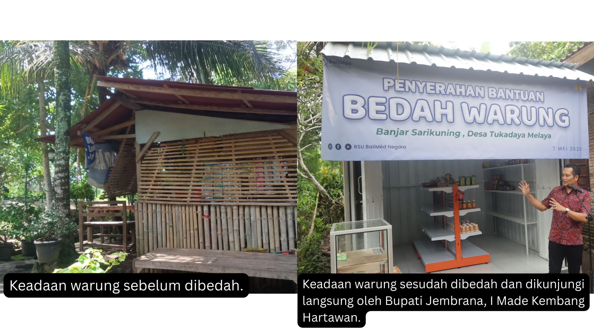 Sementara itu, Direktur RS BaliMed, dr. I Gede Putu Dhinaranata, menjelaskan bahwa bantuan bedah warung ini merupakan bentuk dukungan terhadap pemerintah daerah serta bagian dari CSR rumah sakit dalam momentum ulang tahun ke-8 RSU BaliMed.