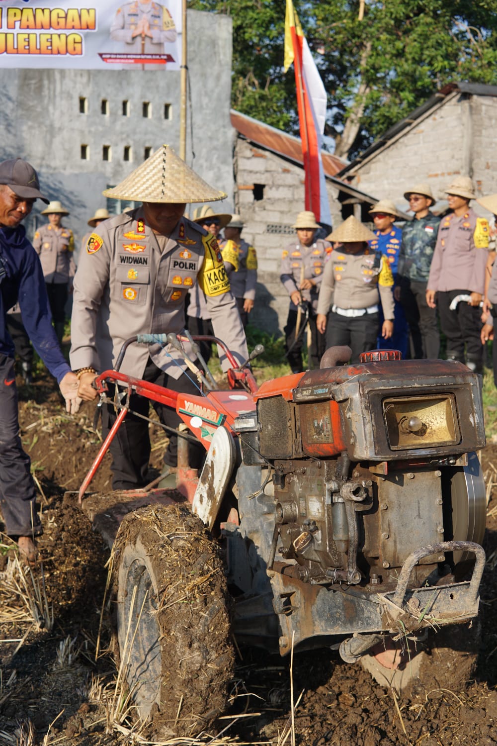 Kapolres beserta PJU dan personil Polres Buleleng kemudian melaksanakan kegiatan pematangan lahan, melakukan pengolahan dengan traktor, serta penyebaran pupuk di lokasi kebun Polres Buleleng. Dan acara ini diakhiri dengan pembuatan video testimoni serta foto bersama. GS