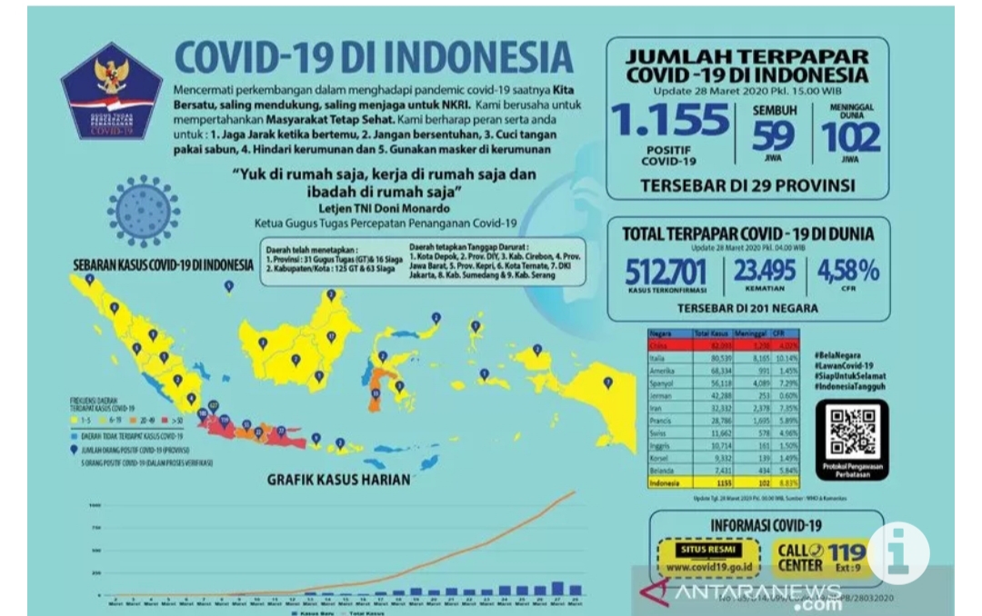 Apabila dilihat dari sebaran pandemi ini sudah hampir merata di seluruh wilayah Indonesia. Pemerintah selaku pihak yang paling bertanggung jawab terhadap kesehatan rakyatnya tidak henti-hentinya memberikan informasi, edukasi, dan motivasi guna menghadapi pandemi corona ini agar tidak meluas dan memperparah keadaan.