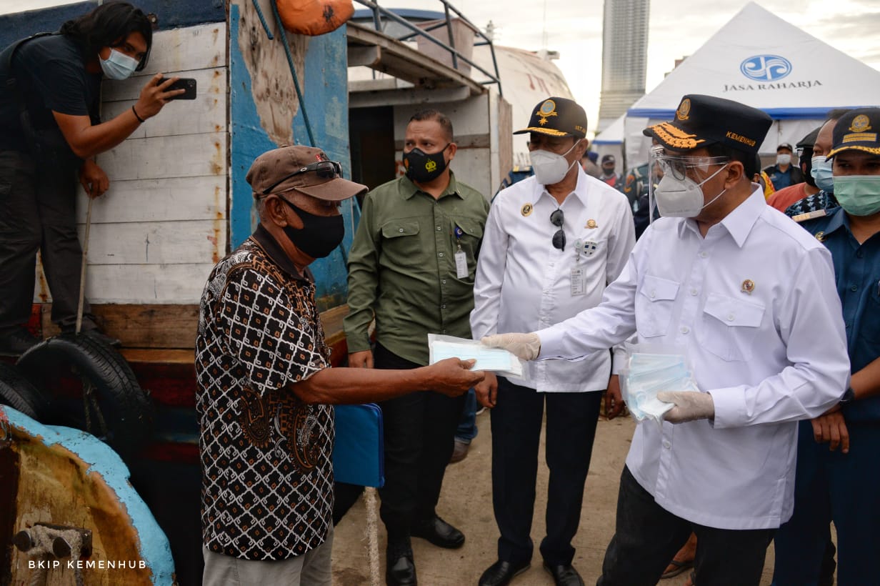 Selain itu, Menhub membagikan bingkisan dan masker kepada para petugas pelabuhan dan kepolisian di sekitar pelabuhan. Menhub juga membagikan masker kepada para penumpang, awak kapal, serta para pedagang di sekitar Pelabuhan Kaliadem.