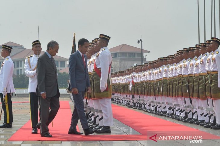 Presiden Jokowi dan Mahathir saat memeriksa barisan (Foto ANTARA / Agus Setiawan) (1)