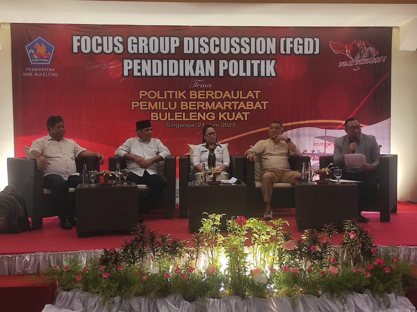 Pendidikan politik merupakan hal penting untuk menyukseskan Pemilu Tahun 2024 yang bermartabat untuk itu sosialisasi terus dilakukan Pemerintah Kabupaten Buleleng kepada ormas, partai politik, tokoh adat dan masyarakat, mahasiswa dan siswa SMA/SMK di Buleleng sebagai pemilih pemula. Demikian disampaikan Kepala Badan (Kaban) Kesbangpol Kabupaten Buleleng Komang Kappa Tri Aryandono mewakili Pj. Bupati dalam Focus Group Discussion (FGD) Pendidikan Politik di Hotel Banyualit Kalibukbuk Lovina, pada Rabu, (21/6/2023).