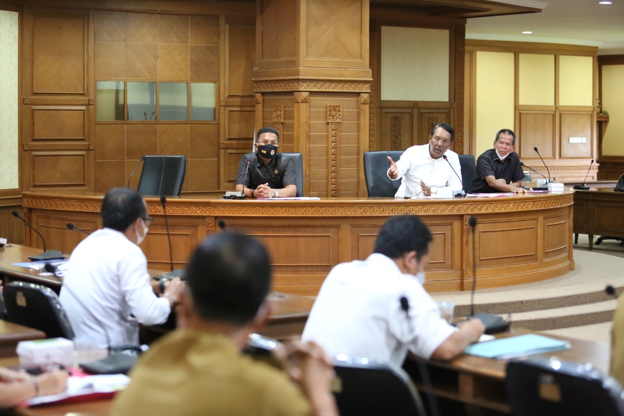 Ketua Komisi II DPRD Badung I Gusti Anom Gumanti didampingi Made Wijaya dan I Nyoman Dirgayusa saat memimpin Rakor di DPRD Badung, Senin (8/3).