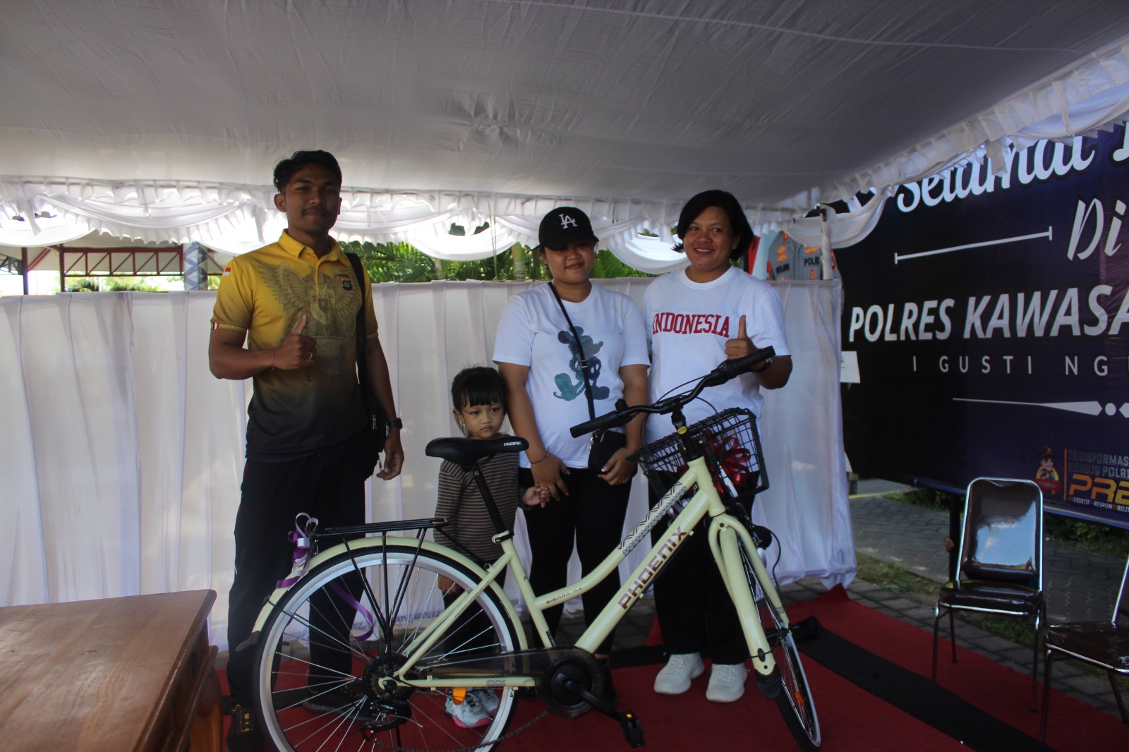 Diakhir acara Kapolres melakukan pengundian kupon doorprise jalan santai untuk hadiah utama berupa sepeda gayung yang dimenangkan oleh Bhayangkari Ida Bagus Aditya Mahaputra.
