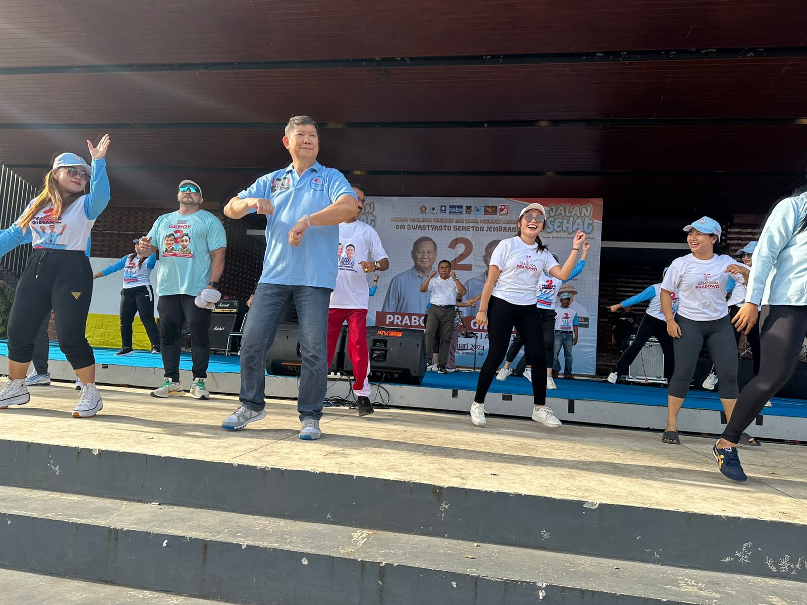 Relawan Semeton Prabowo turut berpartisipasi memeriahkan acara Jalan Sehat yang berlangsung di Jembrana, Minggu (14/1/2024). Acara tersebut dihadiri langsung oleh Dewan Pengarah TKN, Hashim Djojohadikusumo dan Pimpinan Partai di Bali.