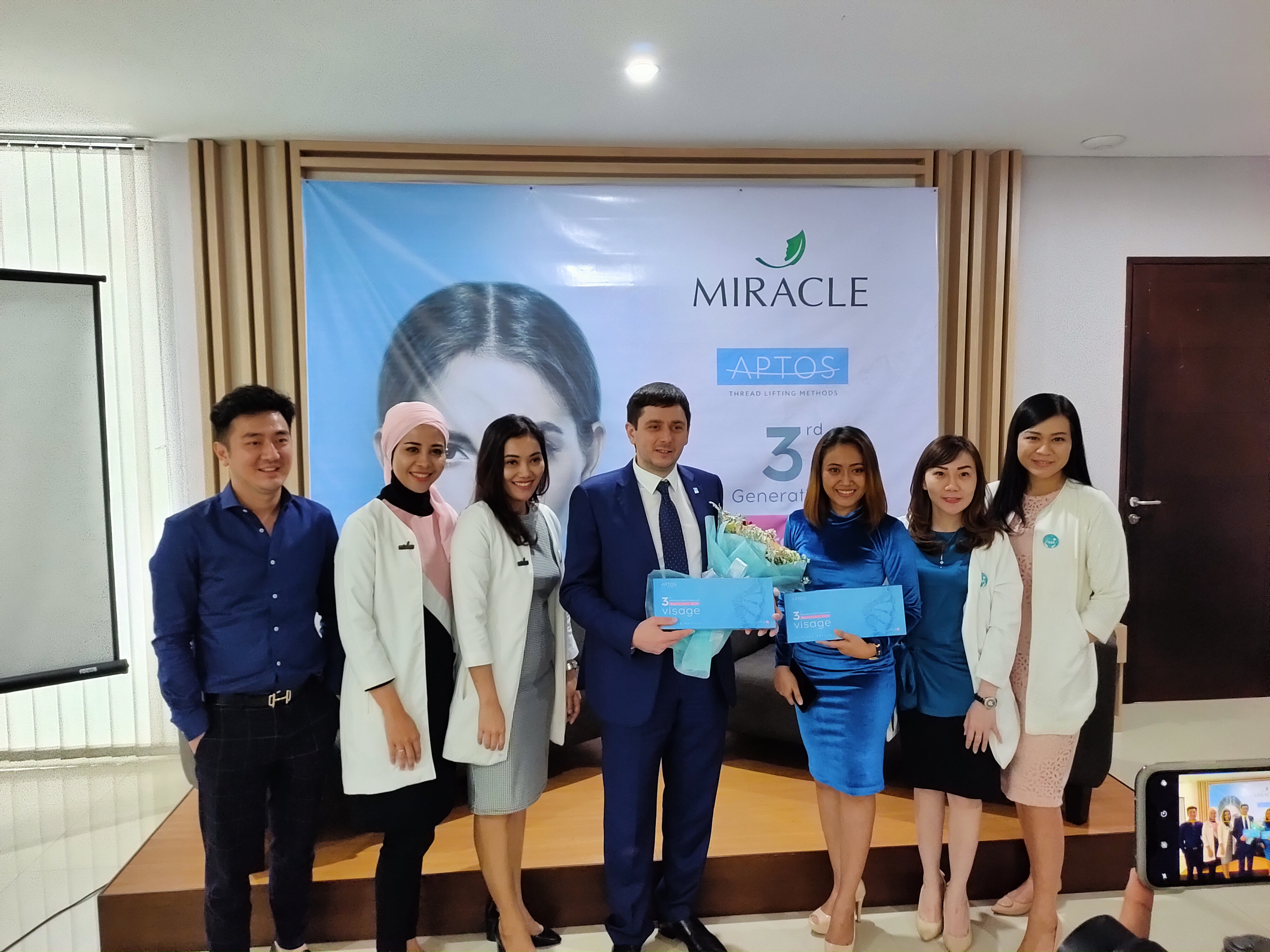 Biasanya zat HA ini digunakan pada filler, kali ini Miracle Aesthetic Clinic memperkenalkan inovasi seni merajut wajah dengan tanam benang terbaru yang mengandung HA pada acara yang bertajuk “The Art of Face Contouring with APTOS EXCELLENCE VISAGE HA.” Acara ini juga dihadiri langsung oleh author sekaligus coach dari APTOS, dr. George Sulamanidze, MD, PhD.