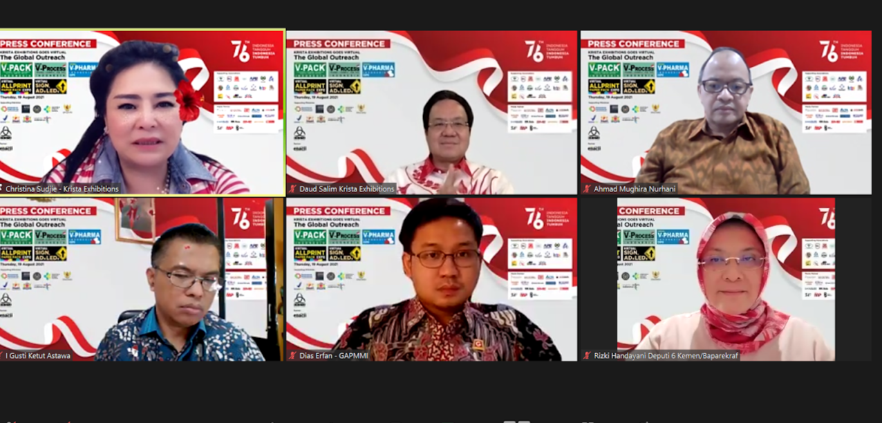 Dalam mendukung perkembangan Industri Kemasan, Farmasi dan Percetakan di masa pandemi ini, Krista Exhibitions kembali menyelenggarakan Pameran Virtual Internasional dengan total lima pameran yaitu Virtual Pack Indonesia Expo, Virtual Process Indonesia Expo, Virtual Pharma Indonesia Expo, Virtual ALL Print Paper Pack Expo, Virtual Sign, Ad & LED’s Expo yang resmi dapat diakses oleh publik melalui virtual platform pada tanggal 24 – 28 Agustus 2021.
