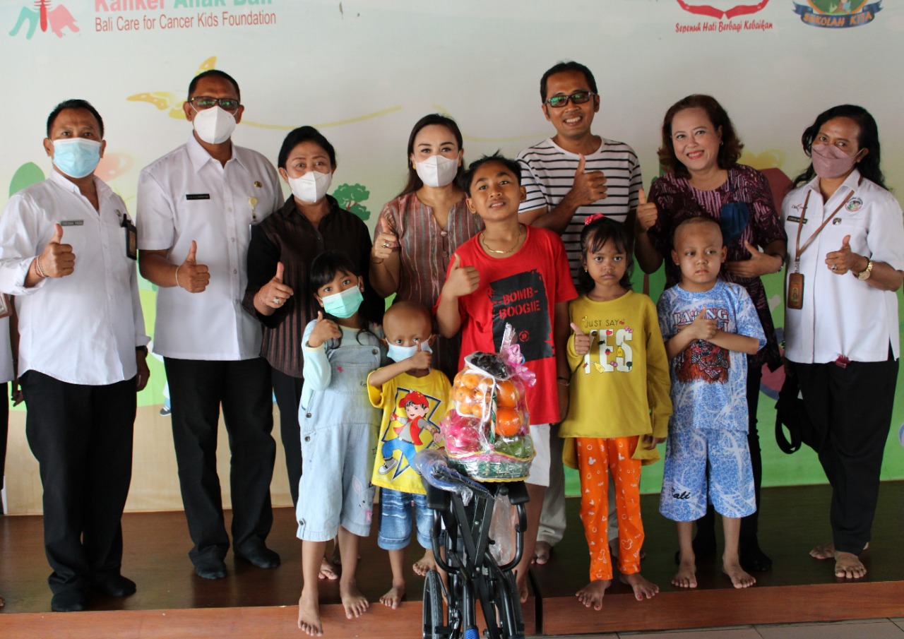 Dalam rangka optimalisasi upaya penanggulangan kanker terpadu di Kota Denpasar, Pemerintah Kota Denpasar melalui Dinas Kesehatan Kota Denpasar menyerahkan bantuan kursi roda ke Yayasan Peduli Anak Kanker Bali.