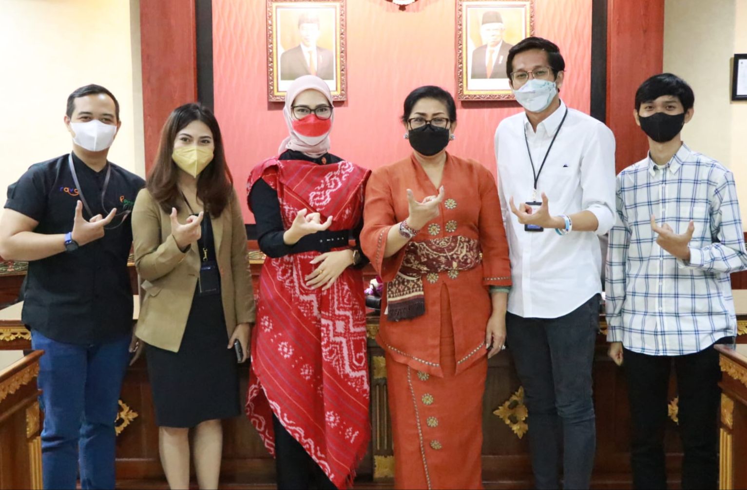 Ketua TP PKK Provinsi Bali yang juga sekaligus Ketua Dekranasda Provinsi Bali Ny. Putri Koster menerima kunjungan kerja dari Staf Khusus Presiden RI, Angkie Yudistia beserta jajaran di Ruang Wiswa Sabha Madya, Kantor Gubernur Bali, Kamis (7/4).