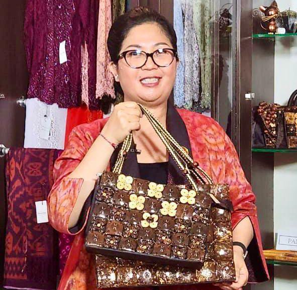 Sementara itu, untuk produk kerajinan lokal, Bunda Rai terus berupaya untuk mempromosikan tas berbahan batok kelapa atau yang biasa disebut “kau”. “Kita ini kan daerah agraris, kaya akan hasil-hasil pertanian, jadi kita manfaatkan potensi tersebut menjadi kerajinan berdaya jual seperti ini. Kreatifitas asli dari para pengrajin kita. Ini yang sedang kita usahakan untuk Go Internasional, kemarin sudah menjadi salah satu kerajinan yang terpilih dalam pameran G20” terangnya.