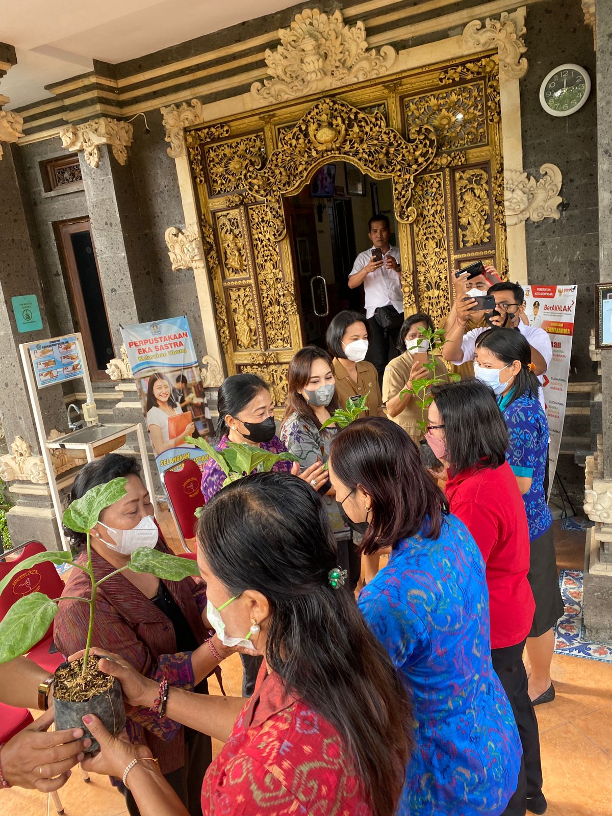 dalam pemanfaatan lahan pekarangan Tim Penggerak PKK Kota Denpasar bekerjasama dengan Dinas Perikanan dan Ketahanan Pangan Kota Denpasar menyerahkan bantuan bibit tanaman kepada kelompok dasa wisma.