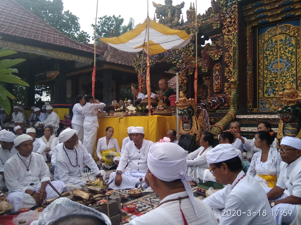 Sebanyak 30 pemangku yang tergabung dalam pinandita sanggraha nusantara (PSN) Kabupaten Jembrana , menggelar doa dan persembahyangan bersama di Pura Segara Pantai Desa Yeh Kuning – Kecamatan Jembrana . rabu sore , 18 maret 2020. Doa dan persembahyangan bersama dalam rangka memohon perlindungan dan keselamatan bangsa , khususnya diKabupaten Jembrana sendiri agar terhindar dari penyebaran virus Corona ( Covid-19 ) , yang tengah menjadi pandemi dunia.