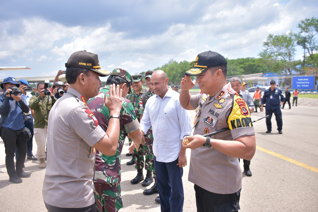 Panglima TNI Marsekal Hadi Tjahjanto, S.I.P., bersama Kapolri Jenderal Polisi Drs. Idham Azis, M.Si, beserta rombongan tiba di Lanud Eltari Kupang Nusa Tenggara Timur pada hari Minggu (22/12/2019) jam 11.45 wita dalam rangka melihat kesiapan pengamanan Natal & Tahun Baru.