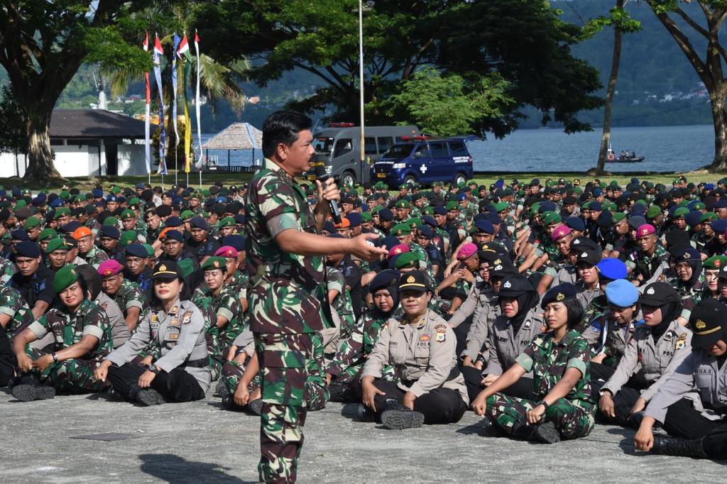 Hal tersebut disampaikan Panglima TNI Marsekal TNI Dr. (H.C.) Hadi Tjahjanto, S.I.P. didampingi Kapolri Jenderal Pol Drs. Idham Azis, M.Si. dihadapan 2.900 prajurit TNI-Polri se-wilayah Maluku, bertempat di Lapangan Apel Lantamal IX Ambon, Jumat (17/1/2020).