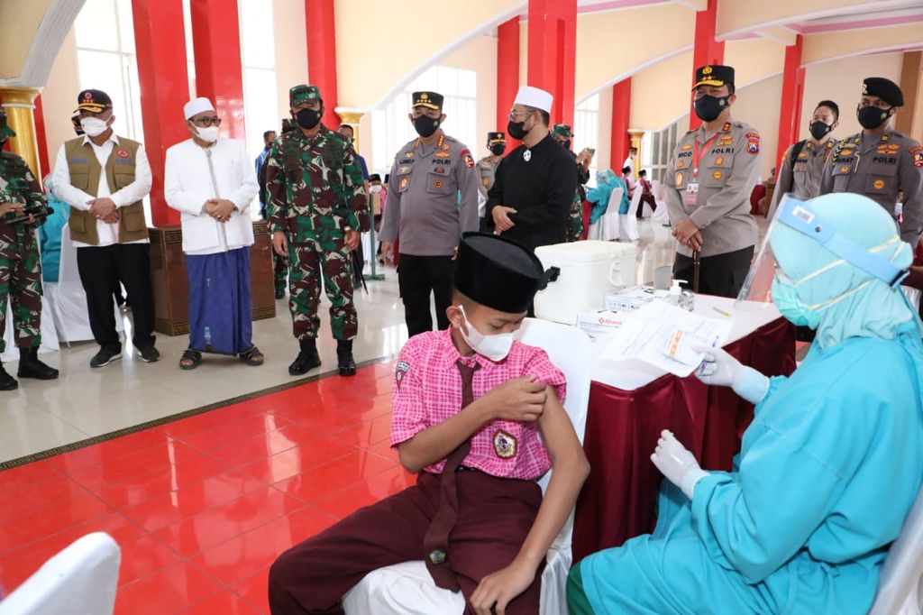 Kegiatan dilanjutkan dengan meninjau serbuan vaksinasi di Pondok Pesantren An-Nur 2 Bululawang Malang adapun target vaksinasi total 7.000 orang yang terdiri dari para santri Ponpes dengan vaksinator 5 Tim.