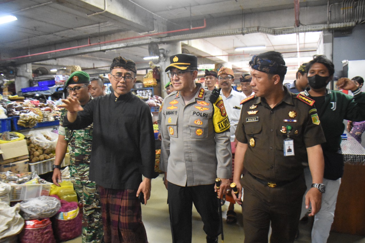 Walikota Denpasar, I Gusti Ngurah Jaya Negara bersama Forkopimda Kota Denpasar yakni Kapolresta Denpasar Kombes Pol. Bambang Yugo Pamungkas, Dandim 1611 Badung Kol. Inf. Dodi Triyo Hadi, Kajari Denpasar Rudy Hartono menggelar Inspeksi Pangan di Pasar Badung, Denpasar, Kamis (15/12). Kegiatan yang merupakan rangkaian program Tim Pengendalian Inflasi Daerah (TPID) Kota Denpasar ini bertujuan untuk memastikan ketersediaan stok, kelancaran distribusi hingga stabilitas harga pangan penyebab inflasi jelan Hari Natal dan Tahun Baru.