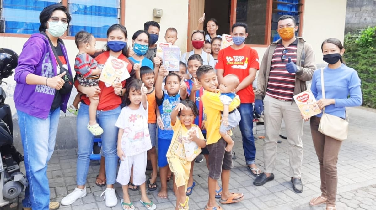 “Selain itu kami juga mengadakan gerakan literasi sejak dini berupa pembagian buku bacaan gratis kepada anak-anak. Harapannya anak-anak memiliki semangat untuk belajar melalui cerita” jelasnya.